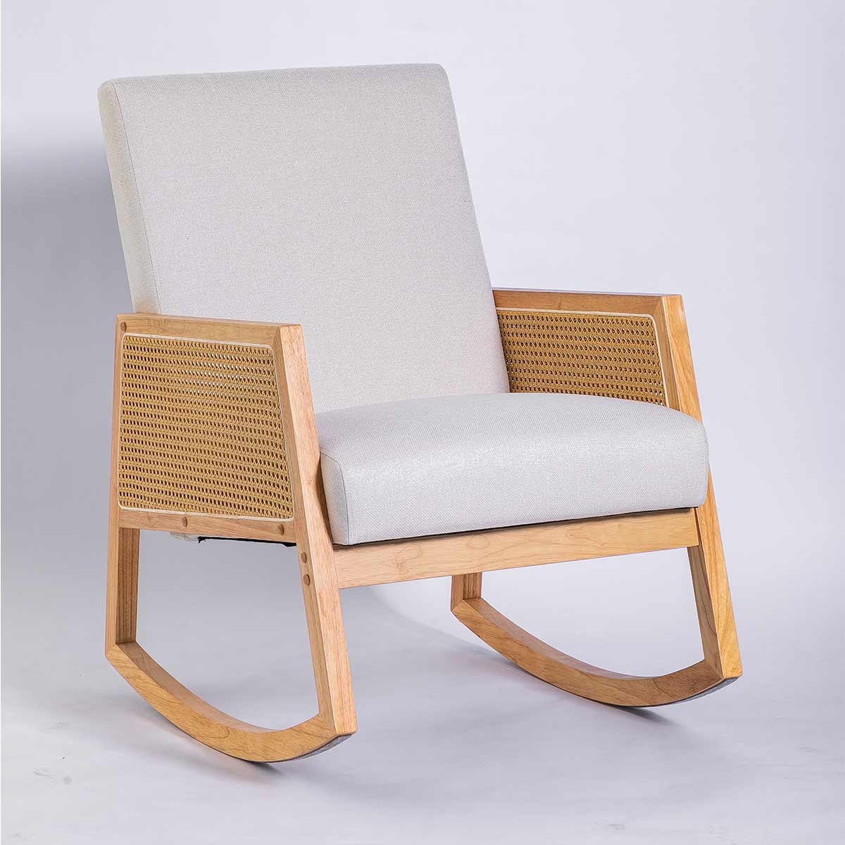 Disfruta de la serenidad y máximo confort con esta butaca mecedora de estilo nórdico.