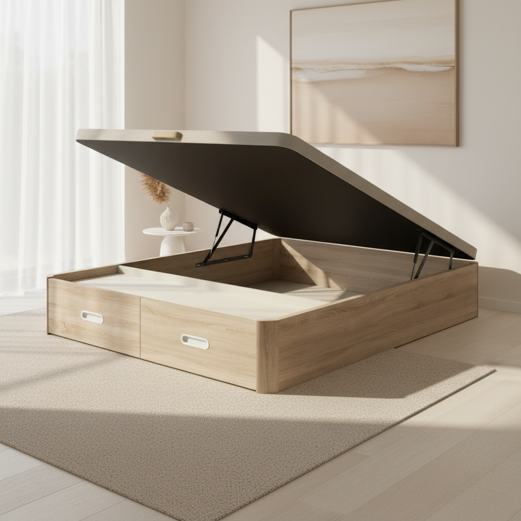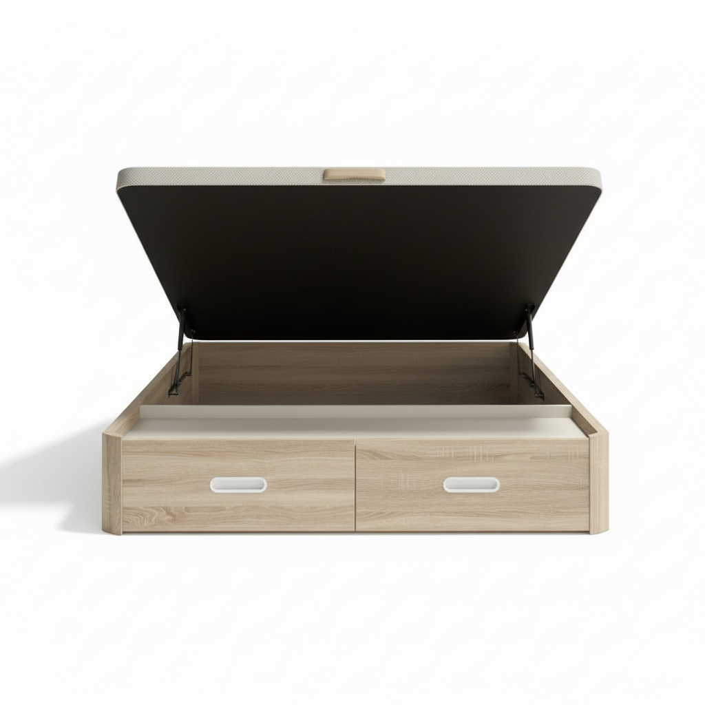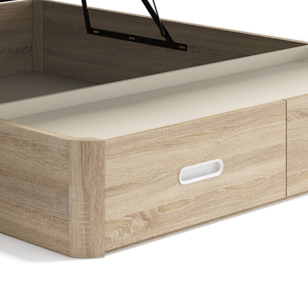 Ideal para cualquier dormitorio, el canapé abatible WOOD CON CAJONES se adapta a todo tipo de estilos y necesidades, asegurando un descanso cómodo y un almacenamiento practico gracias a sus cajoneras.