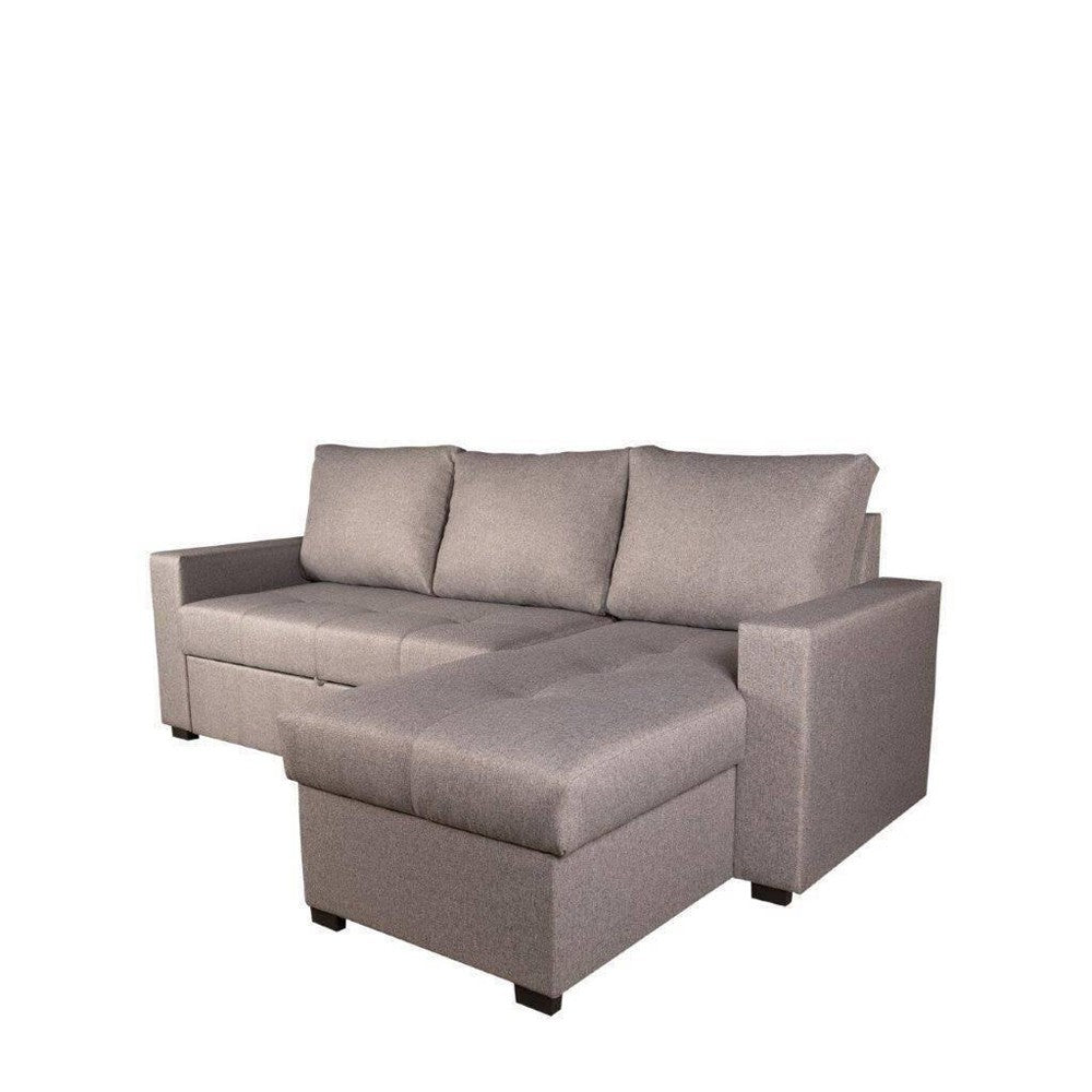 Este elegante chaiselongue redefine el confort y la funcionalidad en tu sala de estar. Tapizada en la resistente y sofisticada tela Sidney color gris, presenta una estructura robusta de madera de pino que garantiza durabilidad. Los asientos cuentan con gomas de alta calidad y los respaldos combinan fibra hueca y picado para un soporte óptimo. Sus patas de PVC en color negro aportan un toque moderno. Este chaiselongue ofrece una cama extraíble con sistema de apertura tipo delfín, ideal para maximizar el espacio, y un práctico arcón de almacenaje en el módulo chaiselongue. Diseñado para adaptarse a cualquier espacio, su montaje reversible la hace versátil para satisfacer tus necesidades de estilo y funcionalidad.