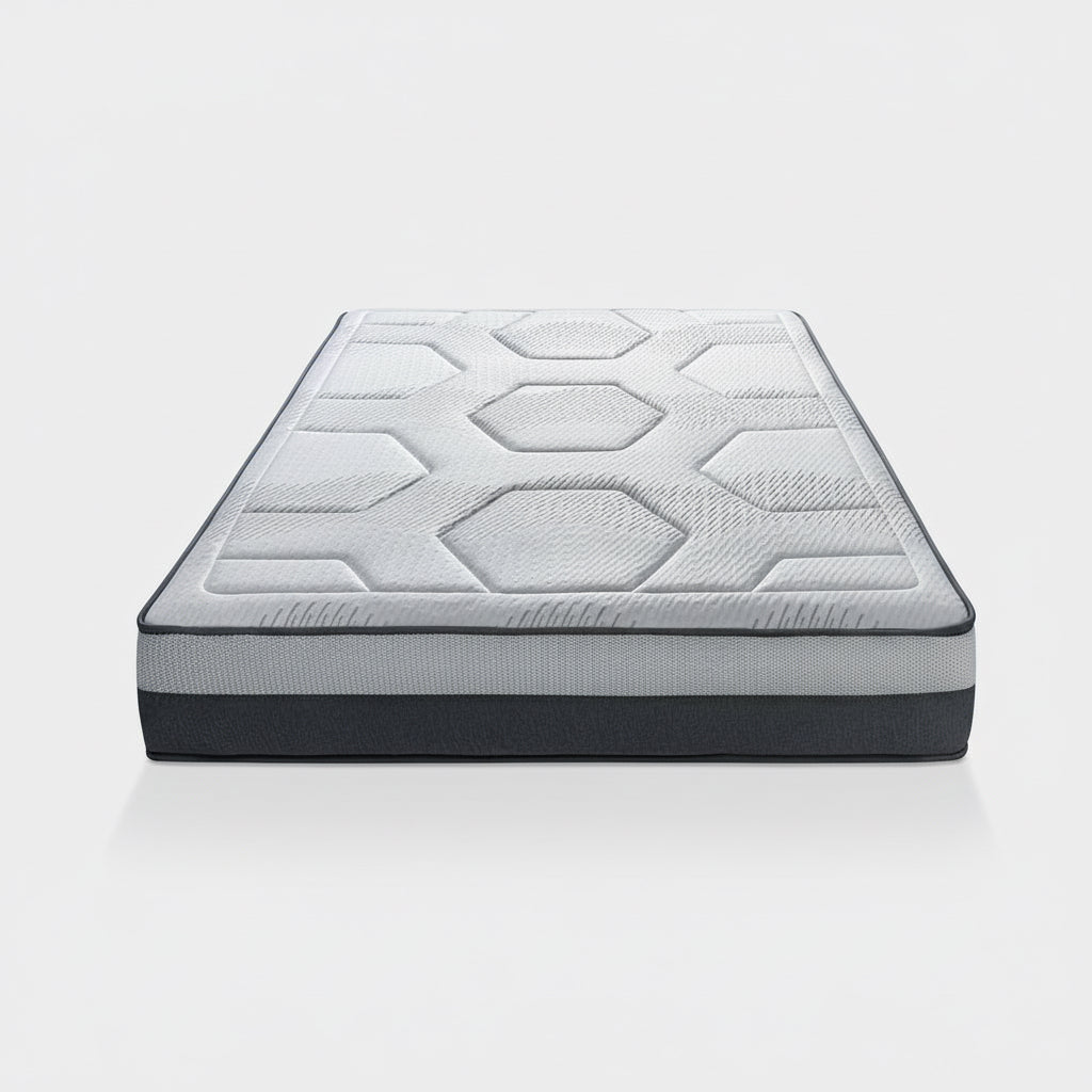 Colchón de espumación técnica, acolchado tapa a tapa en tejido strech, con HR supersoft, viscoelástica y fibra a una cara.