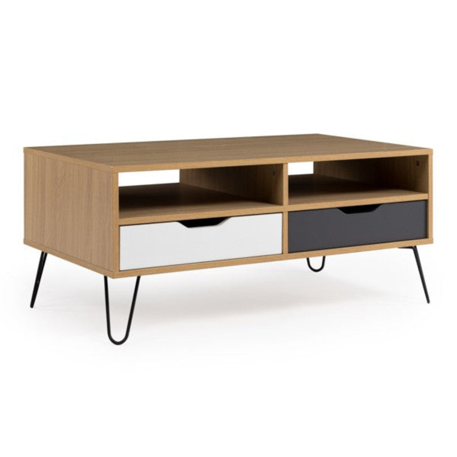 La Mesa de Centro en Madera de Acacia DINAMARCA es el complemento perfecto para llenar tu salón de estilo, haciendo así homenaje a las últimas tendencias en decoración de interiores. La mesa está fabricada en melamina de 3 colores, material que le aporta robustez y resistencia y gracias a sus patas de hierro, lo convierte en un mueble estable y duradero a la par que sofisticado. Dispone de 2 amplios cajones donde podrás guardar tus enseres de uso diario, como mandos, revistas o libros. Combínala con el resto de la colección Dinamarca y crea espacios con mucho encanto.