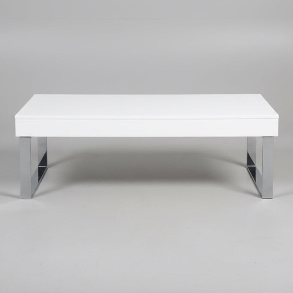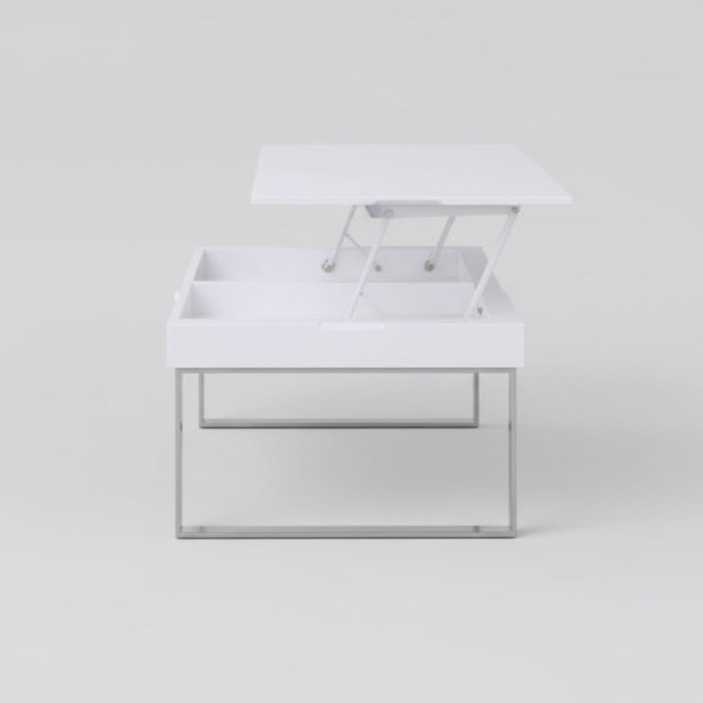 La mesa de centro blanca elevable ZOA es un mueble de apoyo magnífico para el salón de tu casa. Con ella llenarás ese espacio que estaba vacío entre el sofá y la televisión u otro mueble. En ella puedes dejar tus revistas favoritas o el libro que tanto te gusta y también la puedes utilizar para conversar con amigos alrededor de ella y apoyar las bebidas o para ver la serie del momento mientras cenas. Su acabado en color blanco con patas cromadas aporta un toque nórdico y moderno a tu salón. Esta mesa de centro elevable es una pieza práctica y elegante para nuestro salón.