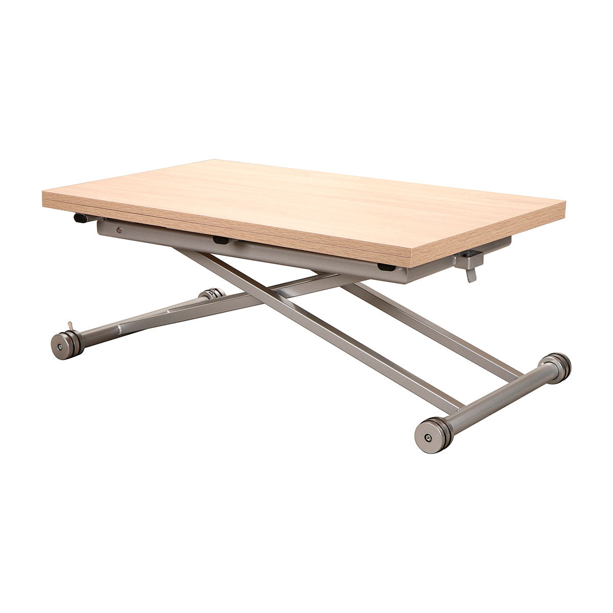 Esta mesa auxiliar es una pieza de gran practicidad para nuestro salón. Gracias a su sistema elevable mediante mecanismo hidráulico de palanca, puedes elevarla a la altura que quieras incluso convertirla en una cómoda mesa de comedor.