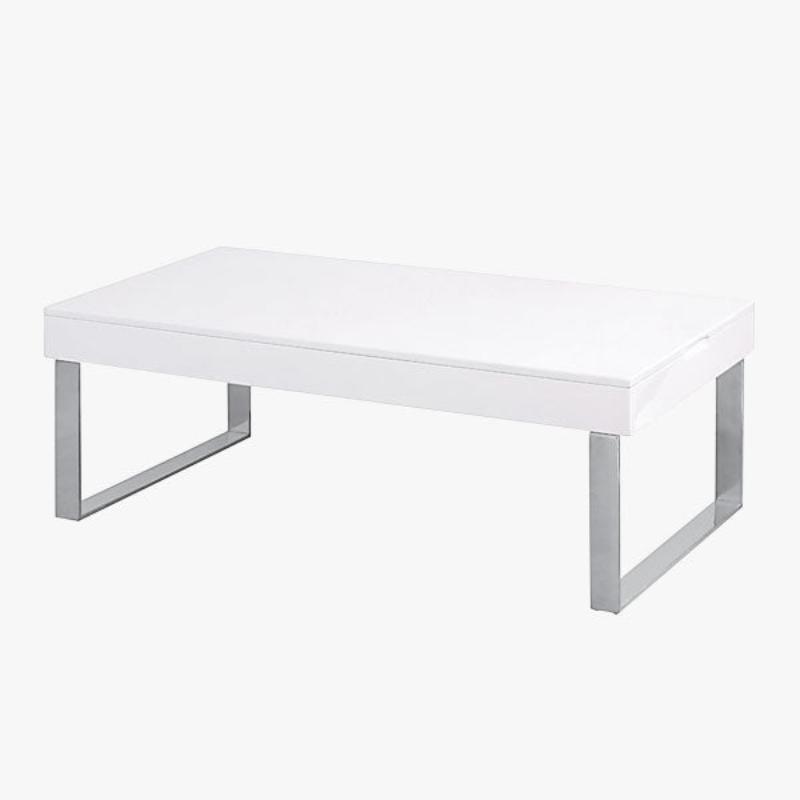 La mesa de centro blanca elevable ZOA es un mueble de apoyo magnífico para el salón de tu casa. Con ella llenarás ese espacio que estaba vacío entre el sofá y la televisión u otro mueble. En ella puedes dejar tus revistas favoritas o el libro que tanto te gusta y también la puedes utilizar para conversar con amigos alrededor de ella y apoyar las bebidas o para ver la serie del momento mientras cenas. Su acabado en color blanco con patas cromadas aporta un toque nórdico y moderno a tu salón. Esta mesa de centro elevable es una pieza práctica y elegante para nuestro salón.