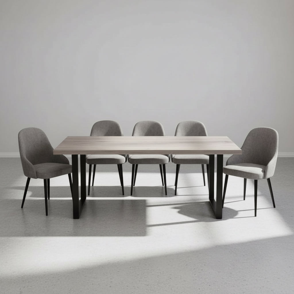 El modelo Atenea ofrece una líneas elegantes y sofisticadas gracias a sus acabados especialmente pensados para aportar un diseño cuidado fusionado con la calidad de unos materiales resistentes que consiguen la durabilidad que cualquier mesa de comedor necesita. Su acabado vinílico en madera de olmo consigue un efecto visual que proporciona armonía y serenidad al espacio que junto a sus patas metálicas lacadas en negro mate logra combinarlo a la perfección con un estilo industrial muy demandado en la actualidad.