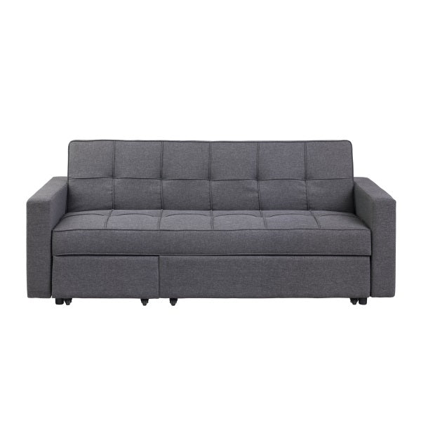Este sofá cama clic clac redefine la versatilidad y el confort con su diseño innovador. Con una estructura de madera robusta recubierta en espuma y muelles, está tapizado en una sobria tela gris con detalles de capitoné y costuras de vivo que aportan un toque de sofisticación. Su capacidad de transformación es inigualable: permite múltiples posiciones para adaptarse a tus necesidades diarias, ya sea para disfrutar de un chaise longue o convertirlo en una espaciosa cama queen size. Gracias a su práctico sistema manual de arrastre por ruedas y elevación en los módulos ocultos, ofrece una elegante solución para cualquier sala de estar o apartamento moderno. Se sirve desmontado en dos bultos.